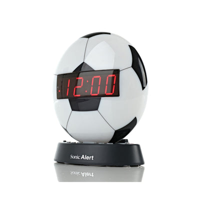 Sonic Glow Soccer Ball Alarm Clock with recordable alarm and Sonic Bomb bed shaker