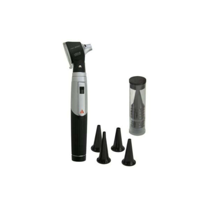 The Heine mini 3000 is a compact, pocket-sized otoscope featuring advanced LEDHQ direct illumination for bright, natural color rendering - no bulb replacement needed. Designed for convenience and clarity, it offers 3X magnification through a swiveling viewing window and eliminates internal refelctions with a black-coated head interior. The ergonomic, shockproof battery handle provides a secure grip and features an automatic shut-off clip for pocket use.